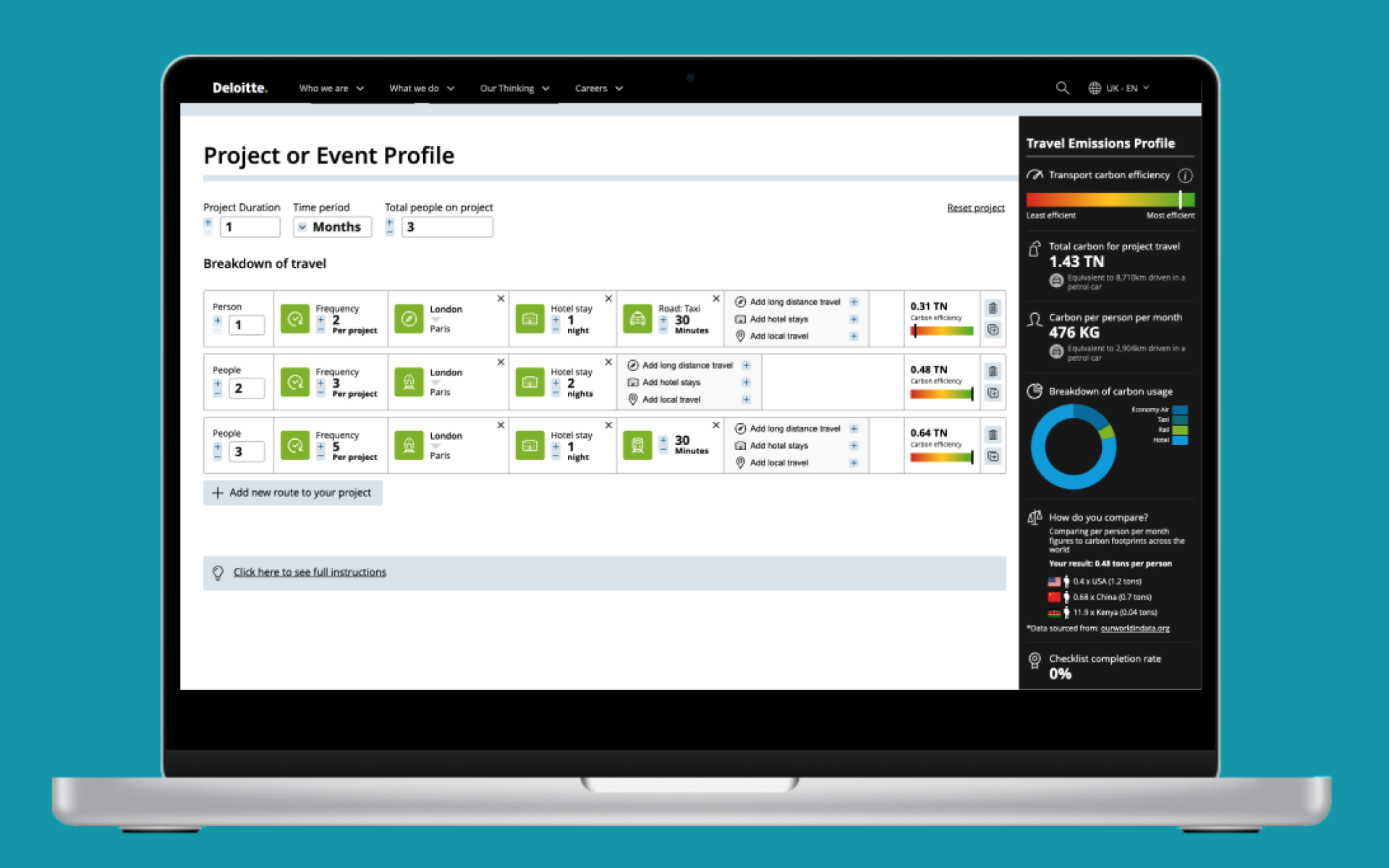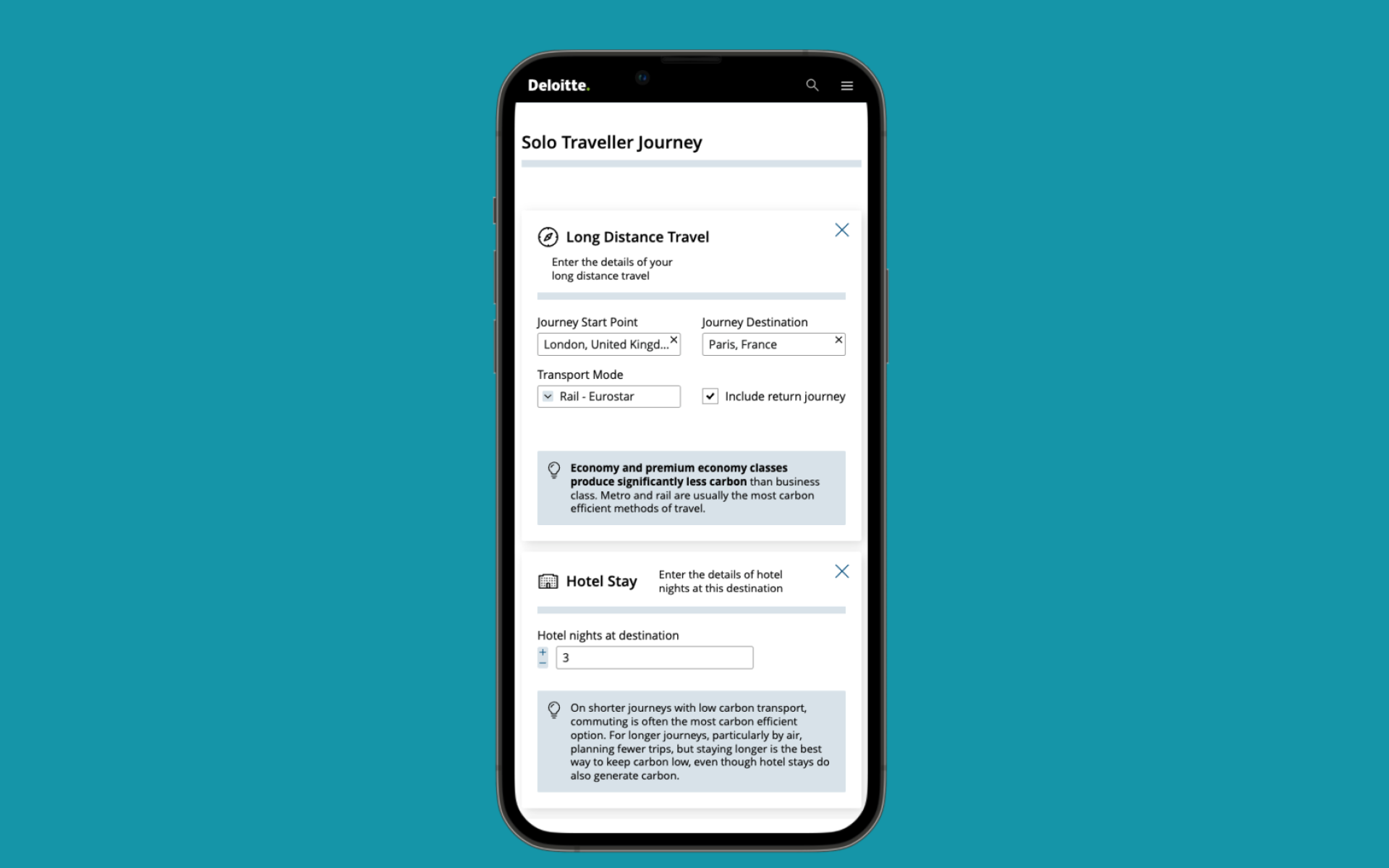 Deloitte approached us with a unique challenge: to develop a tool that not only quantifies the carbon emissions of business travel but also educates and influences users to make more sustainable travel choices.